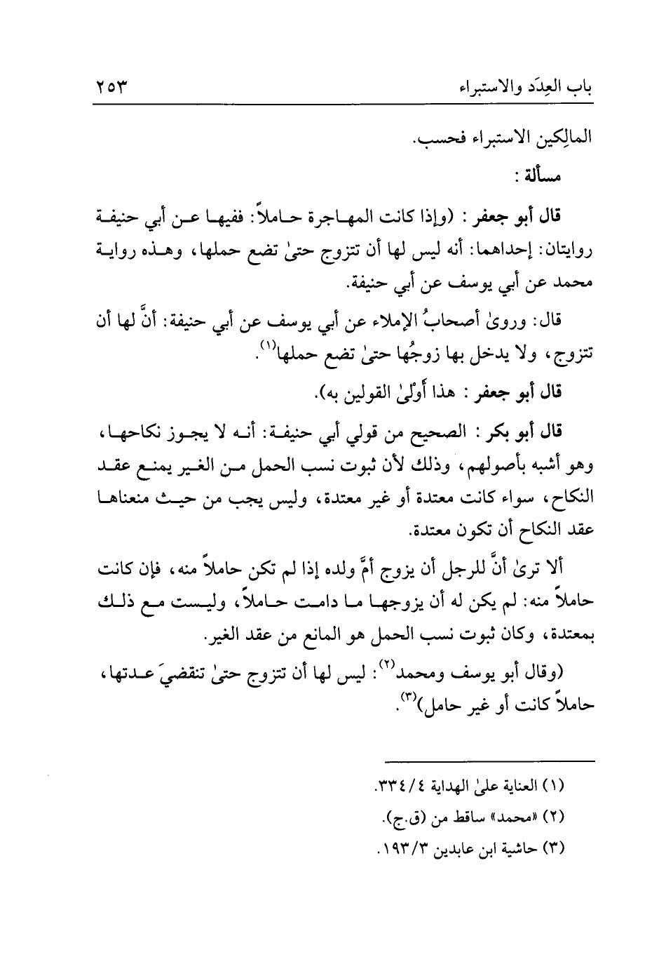 قال أبو جعفر: (وإذا كانت المهاجرة حاملًا: ففيها عن أبي حنيفة روايتان: إحداهما: أنه ليس لها أن تتزوج حتى تضع حملها، وهذه رواية محمد عن أبي يوسف عن أبي حنيفة.