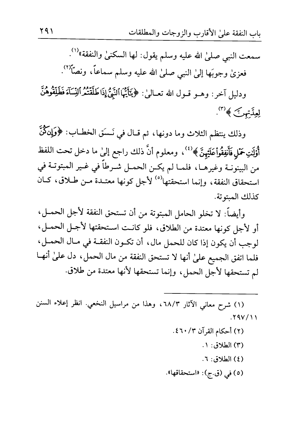 وذلك ينتظم الثلاث وما دونها، ثم قال نسق الخطاب: {وإن كن أولات حمل فأنفقوا عليهن}، ومعلوم أن ذلك راجع إلى ما دخل تحت اللفظ من البينونة وغيرها، فلما لم يكن الحمل شرطًا في غير المبتوتة في استحقاق النفقة، وإنما استحقتها لأجل كونها معتدة من طلاق، كان كذلك المبتونة.