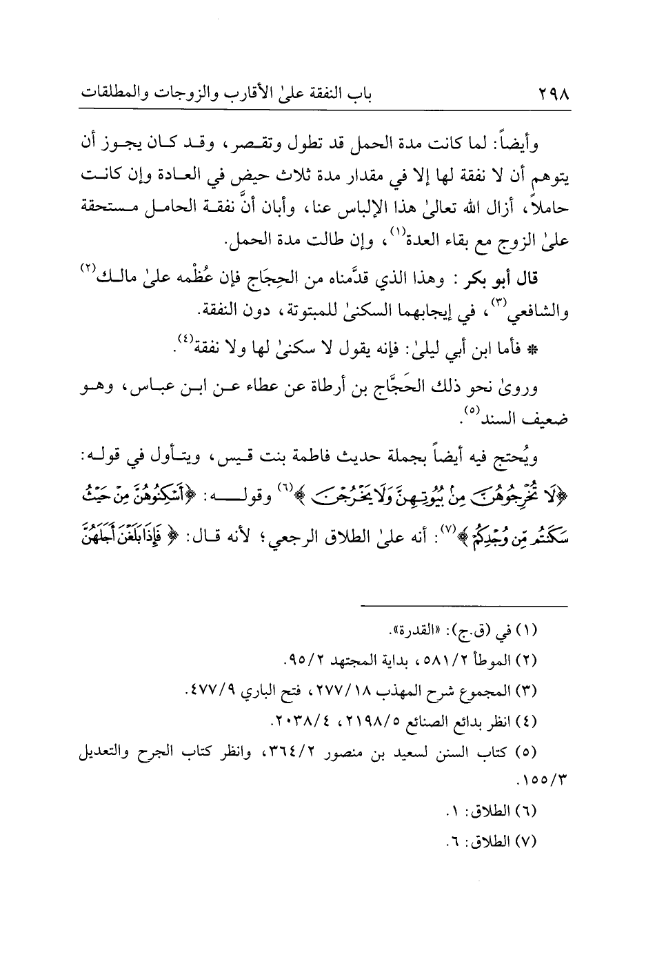 قال أبو بكر: وهذا الذي قدمناه من الحجاج فإن عظمه على مالك والشافعي، في إيجابهما السكنى للمبتوتة، دون النفقة.