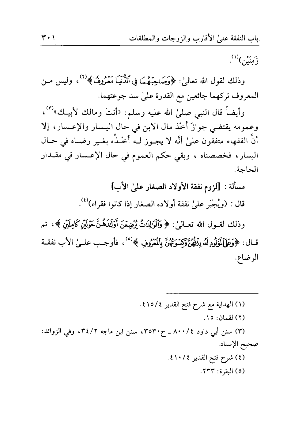 مسألة: [لزوم نفقة الأولاد الصغار على الأب]