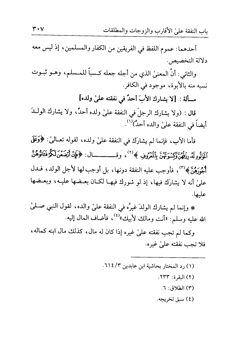 مسألة: [لا يشارك الأب أحد في نفقته على ولده]