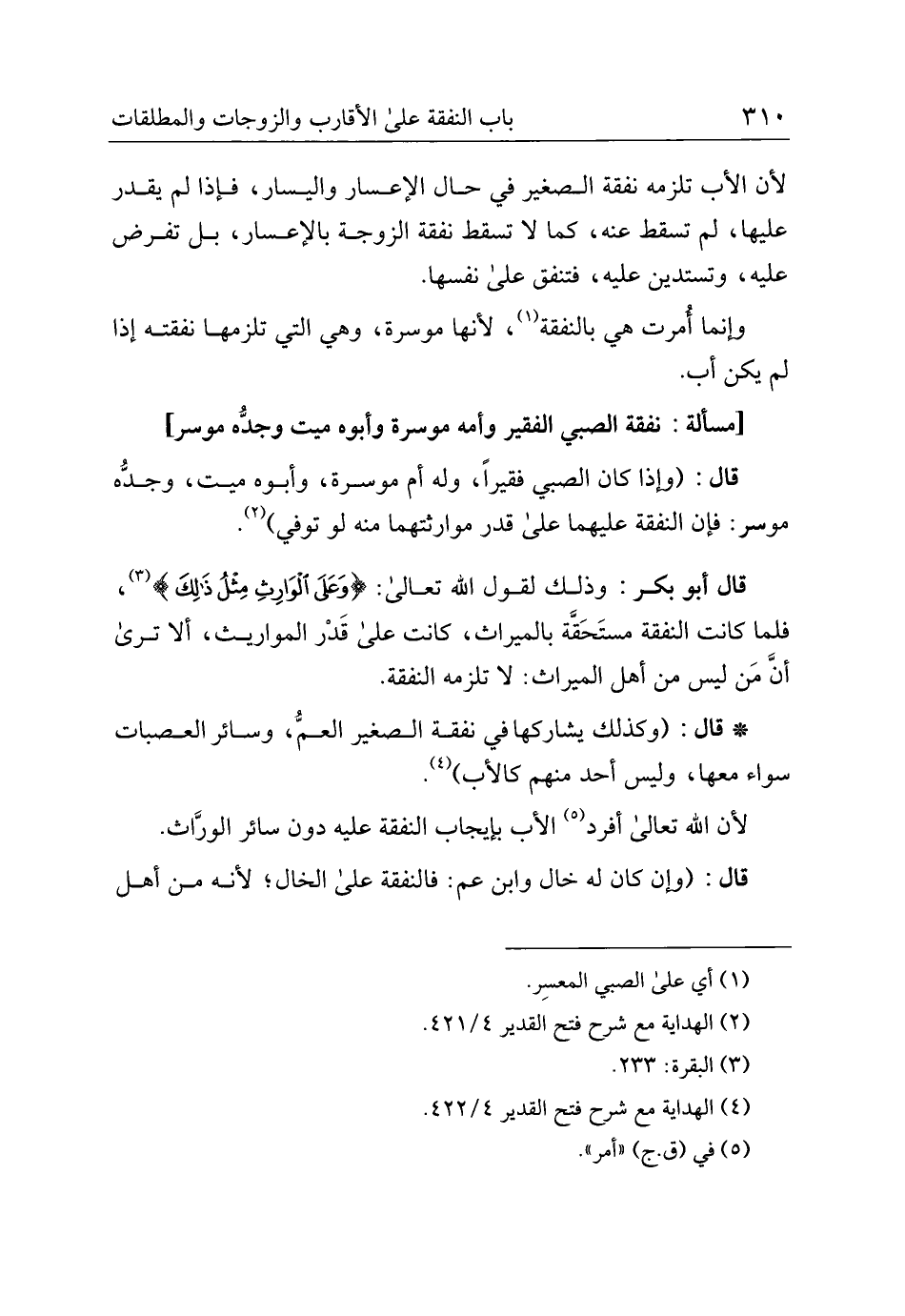 قال أبو بكر: وذلك لقول الله تعالى: {وعلى الوارث مثل ذلك}، فلما كانت النفقة مستحقة بالميراث، كانت على قدر المواريث، ألا ترى أن من ليس من أهل الميراث: لا تلزمه النفقة.