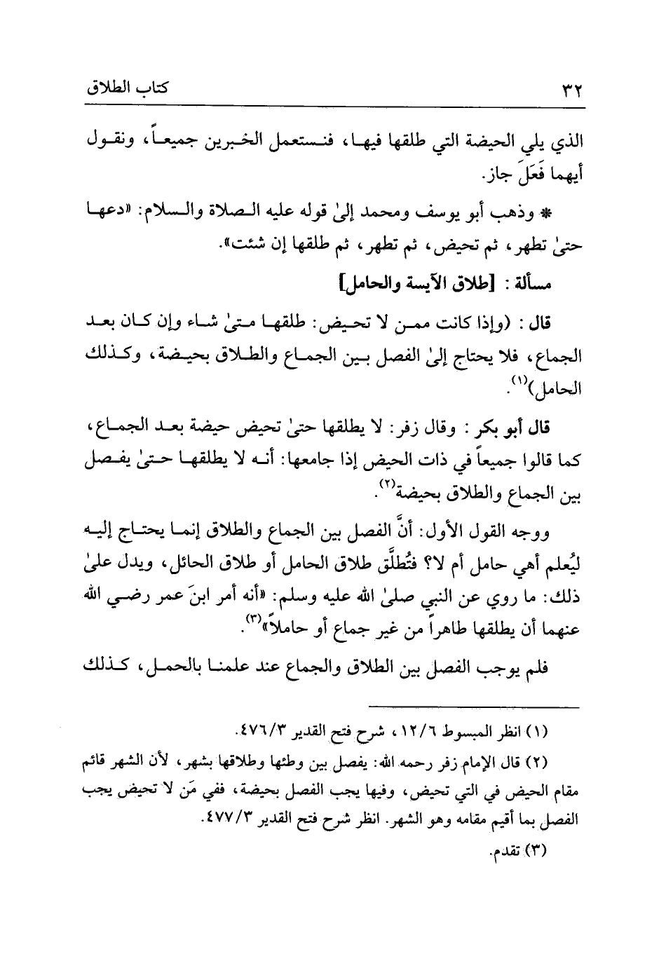 قال أبو بكر: وقال زفر: لا يطلقها حتى تحيض حيضة بعد الجماع، كما قالوا جميعًا في ذات الحيض إذا جامعها: أنه لا يطلقها حتى يفصل بين الجماع والطلاق بحيضة.