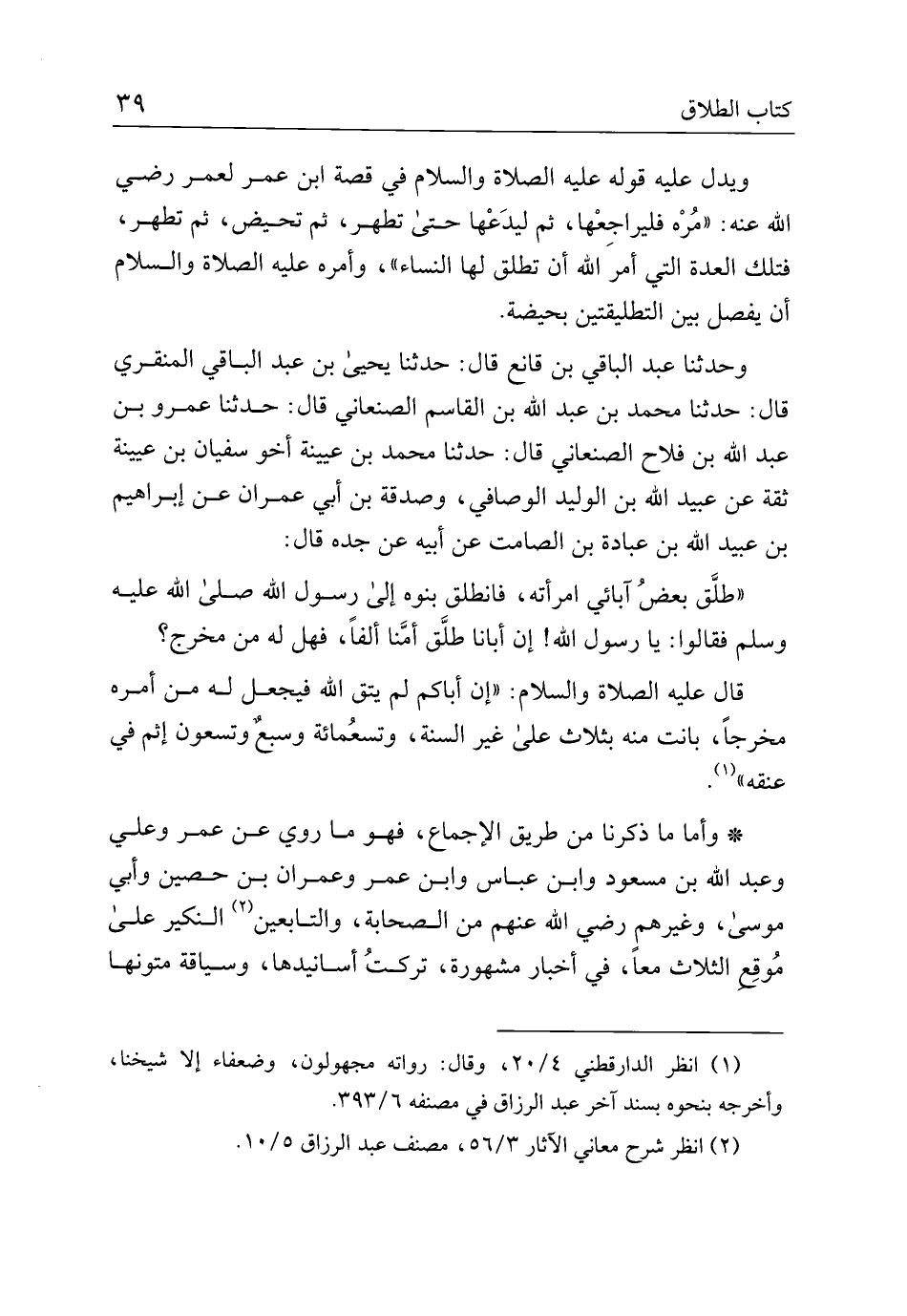 * وأما ما ذكرنا من طريق الإجماع، فهو ما روي عن عمر وعلي وعبد الله بن مسعود وابن عباس وابن عمر وعمران بن حصين وأبي موسى، وغيرهم رضي الله عنهم من الصحابة، والتابعين النكير على موقع الثلاث معًا، في أخبار مشهورة، تركت أسانيدها، وسياقة متونها
