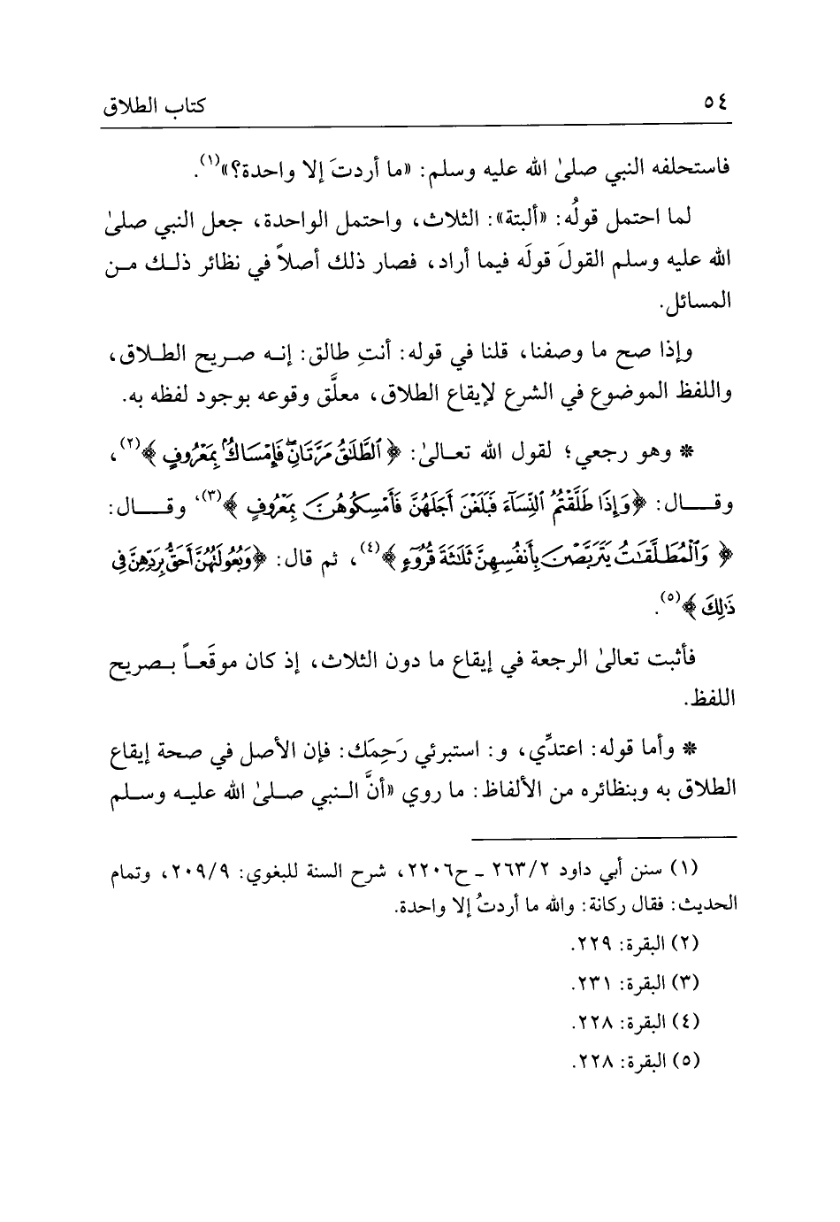 فأثبت تعالى الرجعة في إيقاع ما دون الثلاث، إذ كان موقعًا بصريح اللفظ.