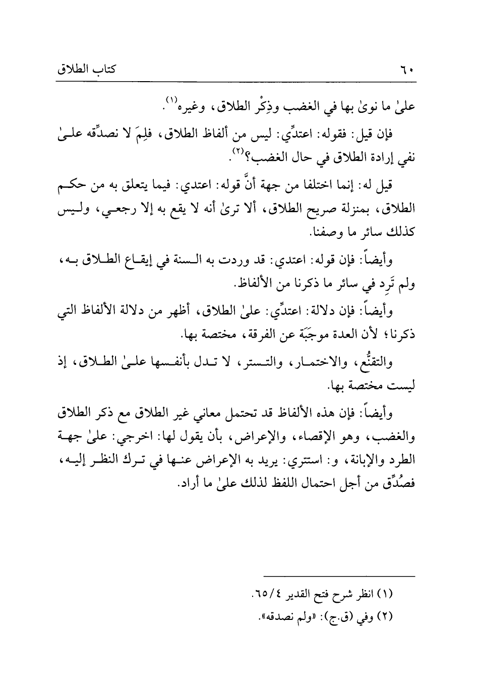 فإن قيل: فقوله: اعتدي: ليس من ألفاظ الطلاق، فلم لا نصدقه على نفي إرادة الطلاق في حال الغضب؟.