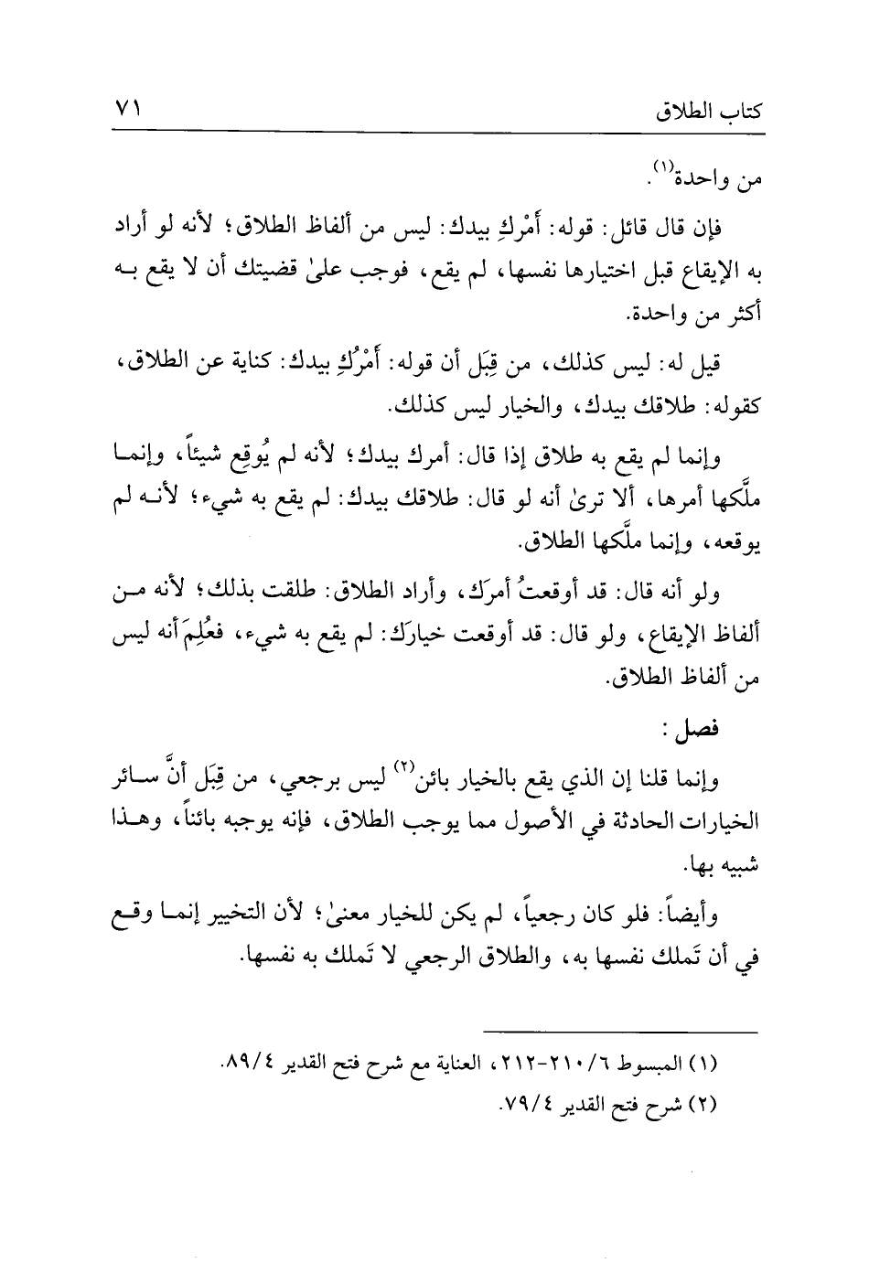 وإنما قلنا إن الذي يقع بالخيار بائن ليس برجعي، من قبل أن سائر الخيارات الحادثة في الأصول مما يوجب الطلاق، فإنه يوجبه بائنًا، وهذا شبيه بها.