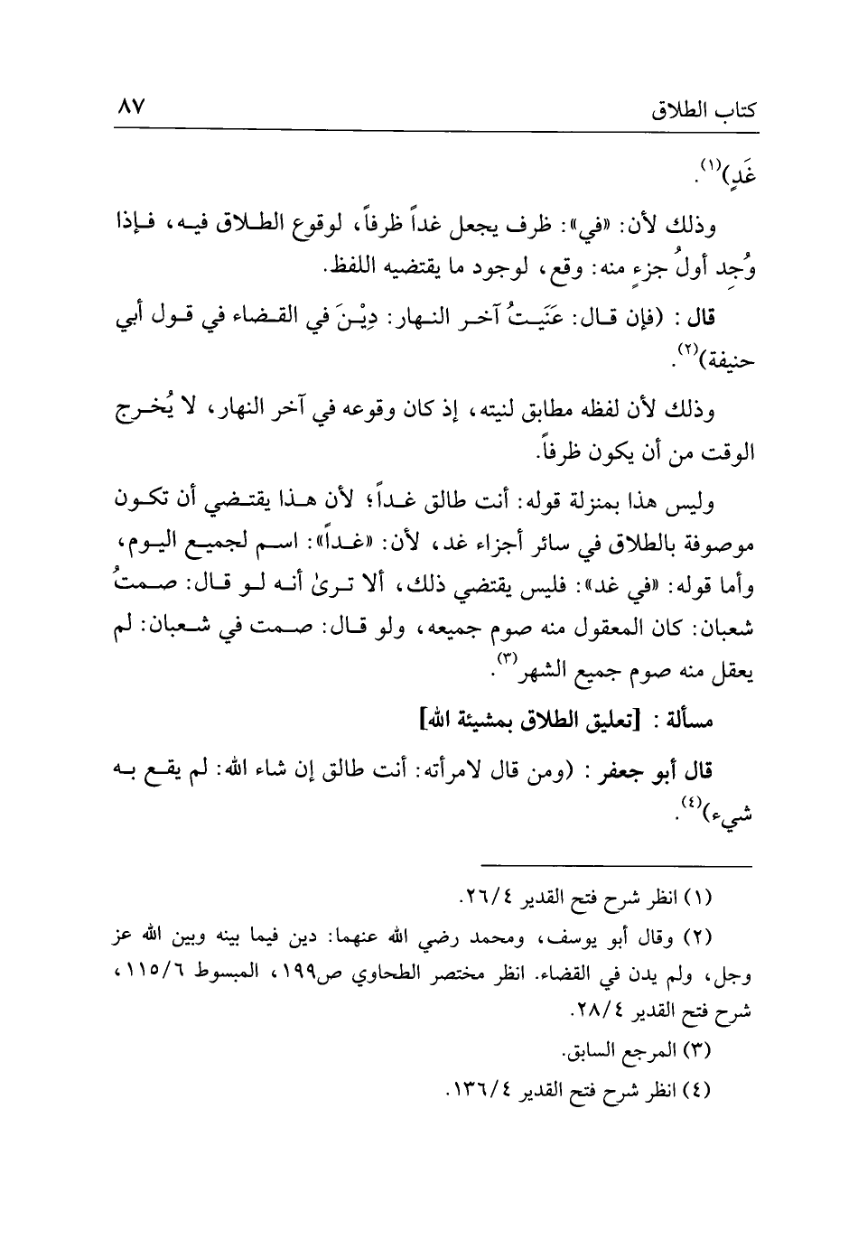 مسألة: [تعليق الطلاق بمشيئة الله]