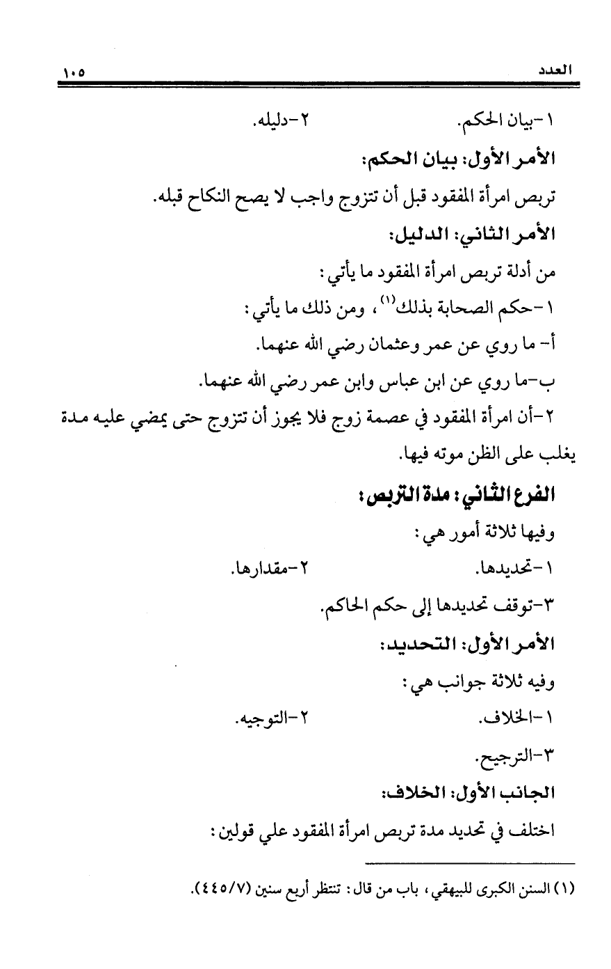 (¬1) السنن الكبرى للبيهقي، باب من قال: تنتظر أربع سنين (7/ 445).