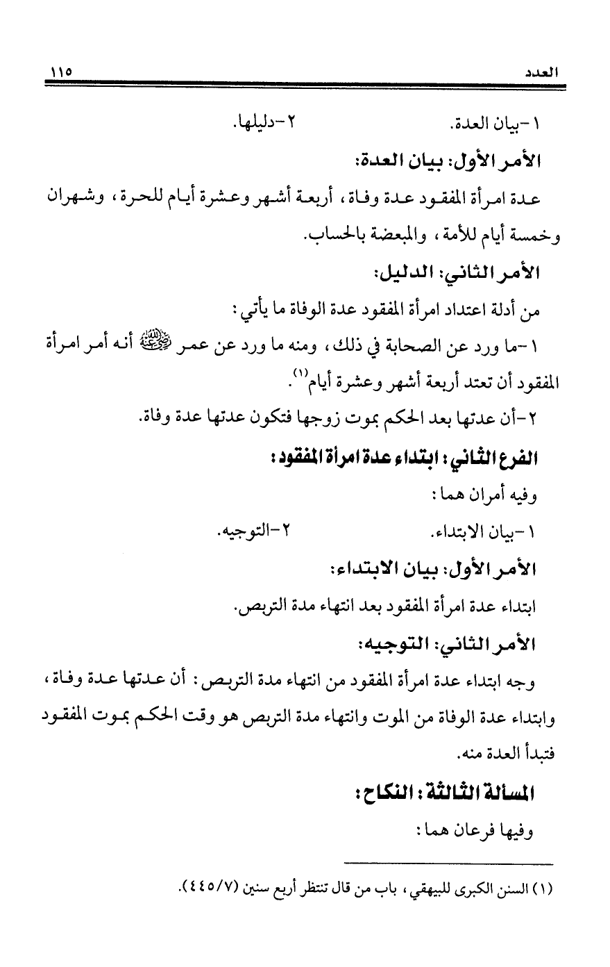 من أدلة اعتداد امرأة المفقود عدة الوفاة ما يأتي: