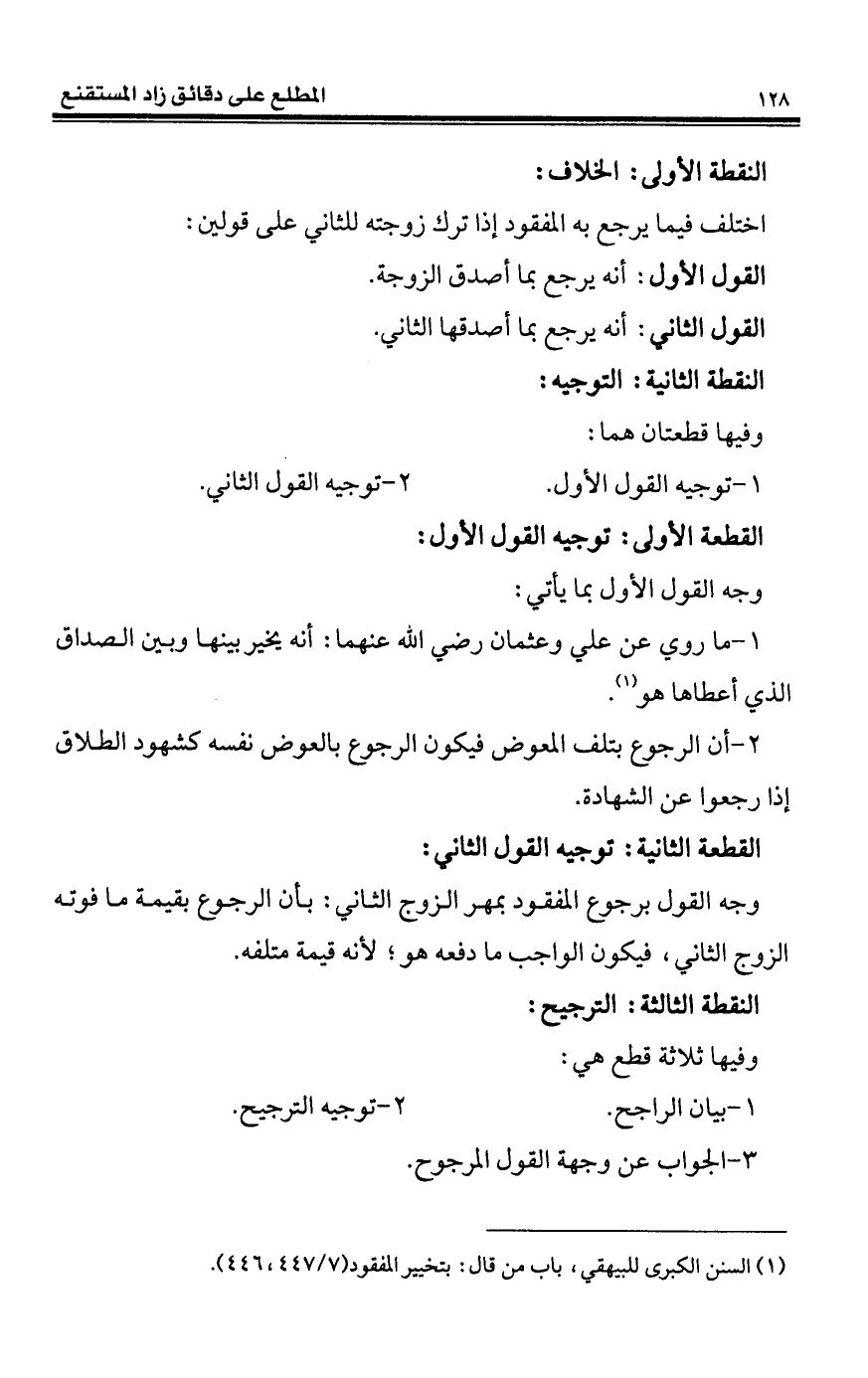 (¬1) السنن الكبرى للبيهقي، باب من قال: بتخيير المفقود (7/ 447، 446).