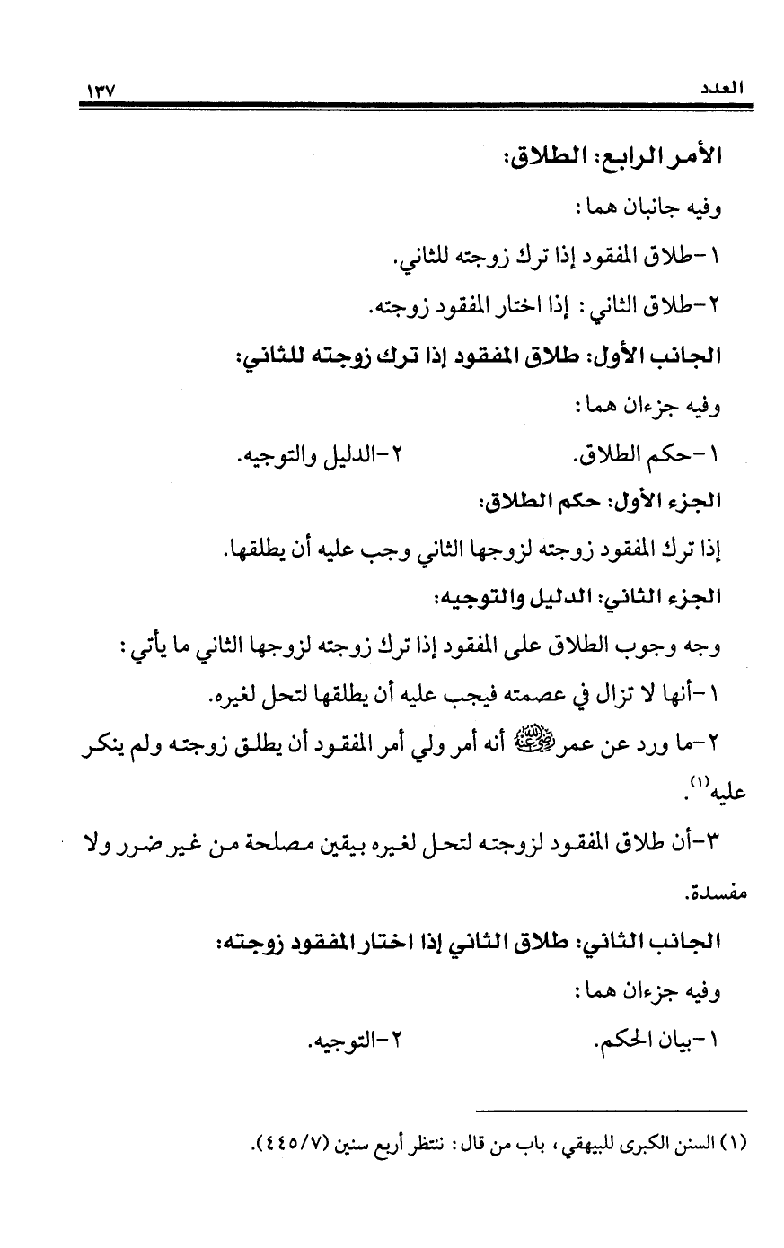 1 - طلاق المفقود إذا ترك زوجته للثاني.