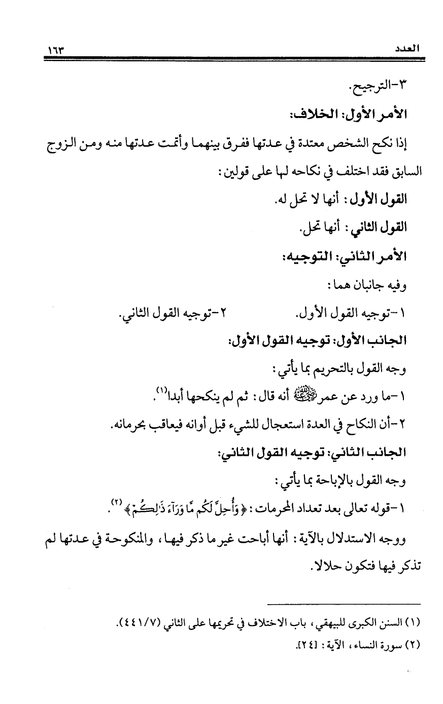(¬1) السنن الكبرى للبيهقي، باب الاختلاف في تحريمها على الثاني (7/ 441).