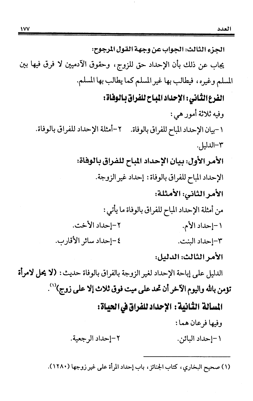 1 - بيان الإحداد المباح للفراق بالوفاة.