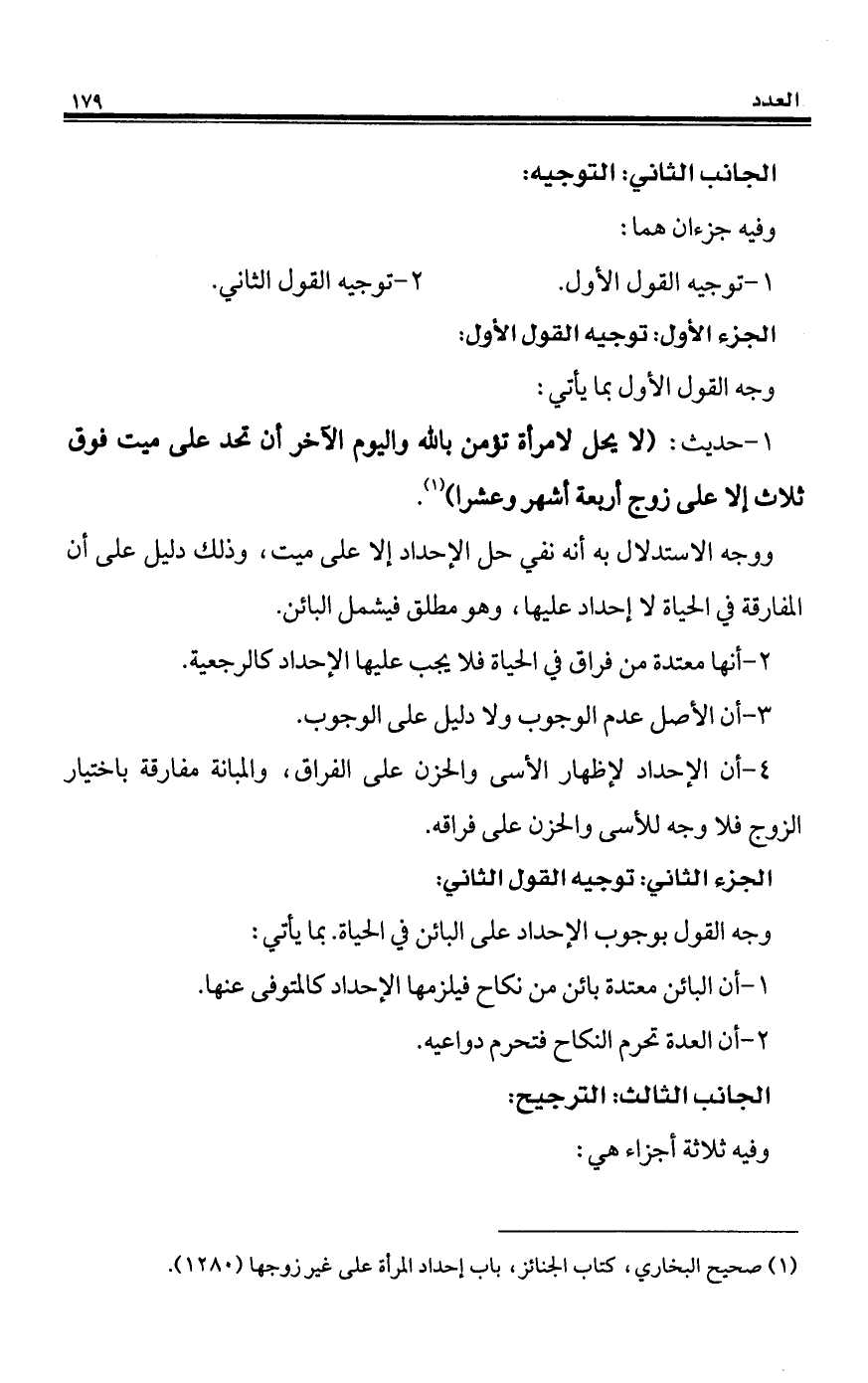 1 - حديث: (لا يحل لامرأة تؤمن بالله واليوم الآخر أن تحد على ميت فوق ثلاث إلا على زوج أربعة أشهر وعشرًا) (¬1).