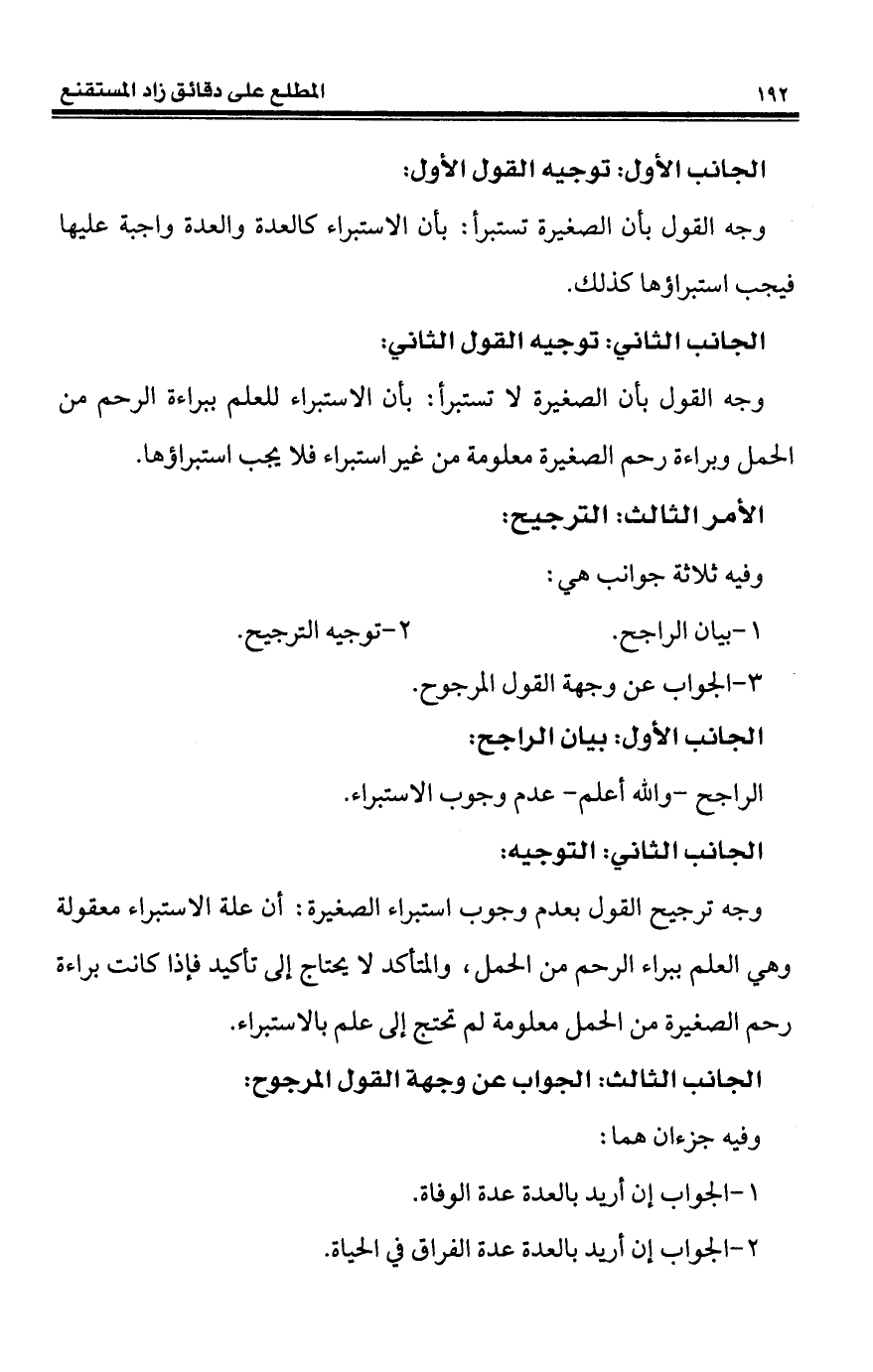 وجه ترجيح القول بعدم وجوب استبراء الصغيرة: أن علة الاستبراء معقولة وهي العلم ببراء الرحم من الحمل، والمتأكد لا يحتاج إلى تأكيد فإذا كانت براءة رحم الصغيرة من الحمل معلومة لم تحتج إلى علم بالاستبراء.