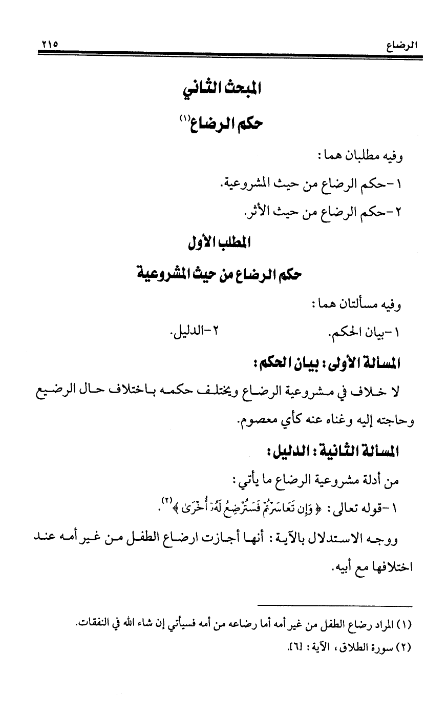 1 - حكم الرضاع من حيث المشروعية.