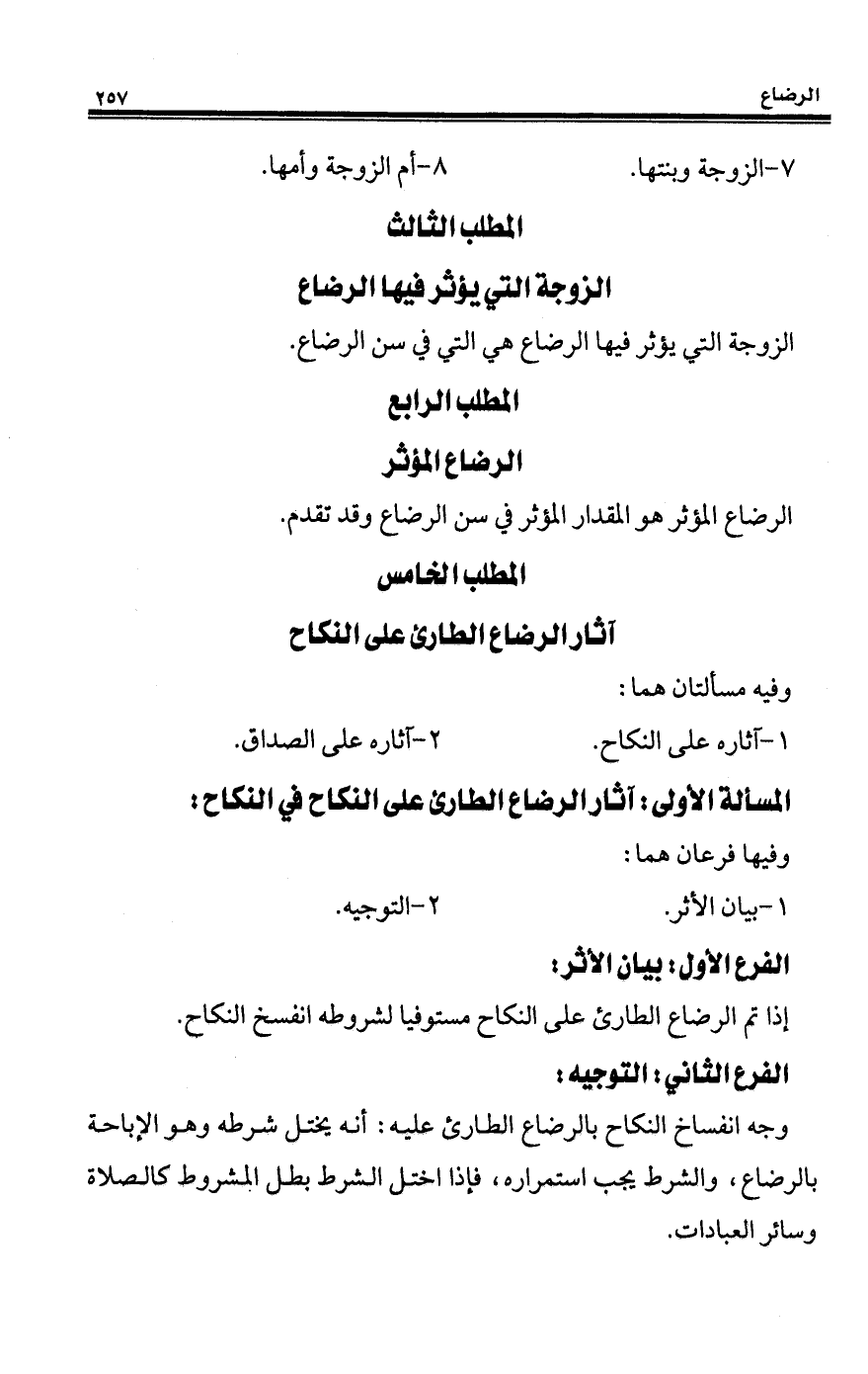المطلب الخامس آثار الرضاع الطارئ على النكاح