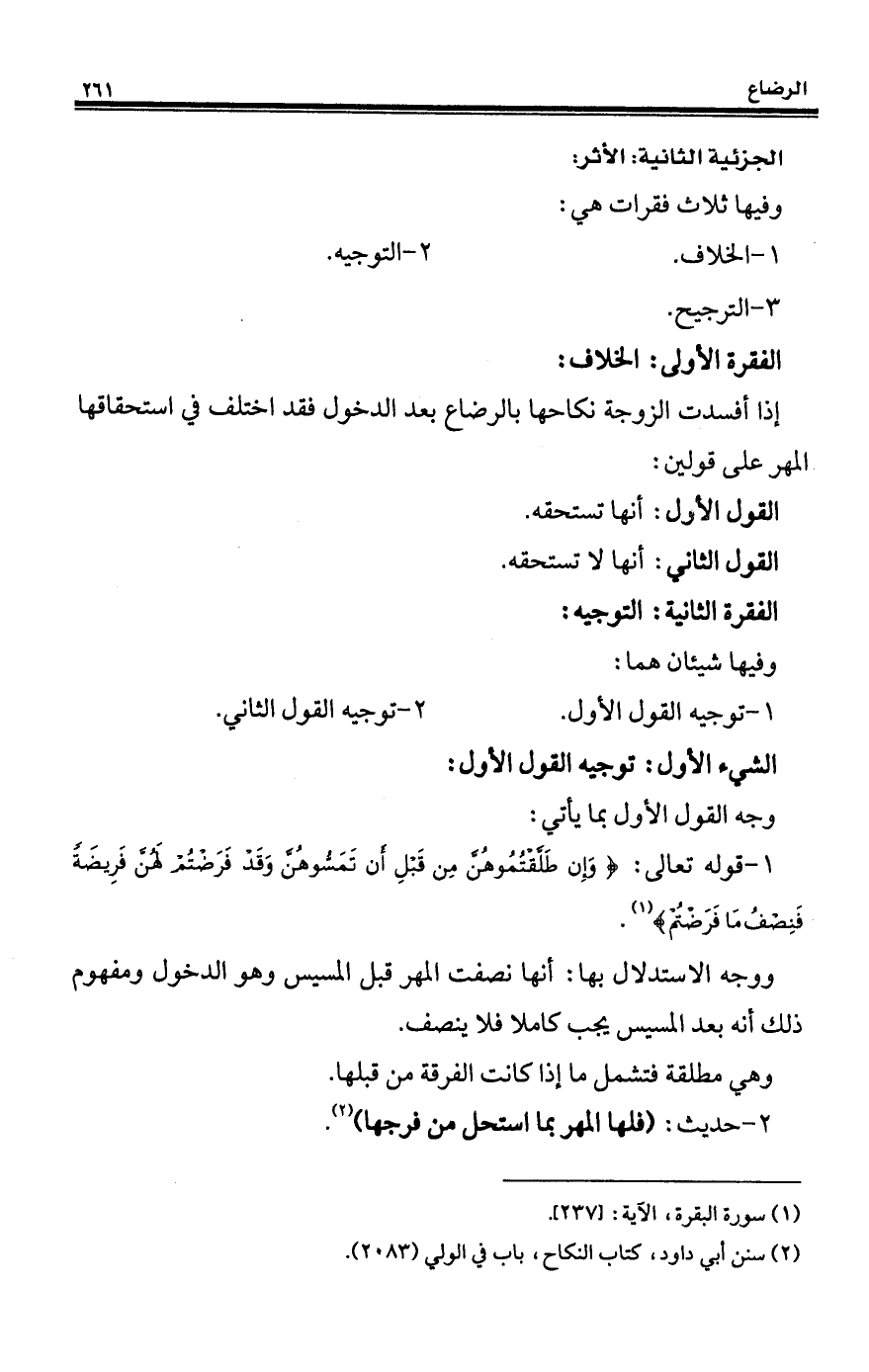 1 - قوله تعالى: {وَإِنْ طَلَّقْتُمُوهُنَّ مِنْ قَبْلِ أَنْ تَمَسُّوهُنَّ وَقَدْ فَرَضْتُمْ لَهُنَّ فَرِيضَةً فَنِصْفُ مَا فَرَضْتُمْ} (¬1).