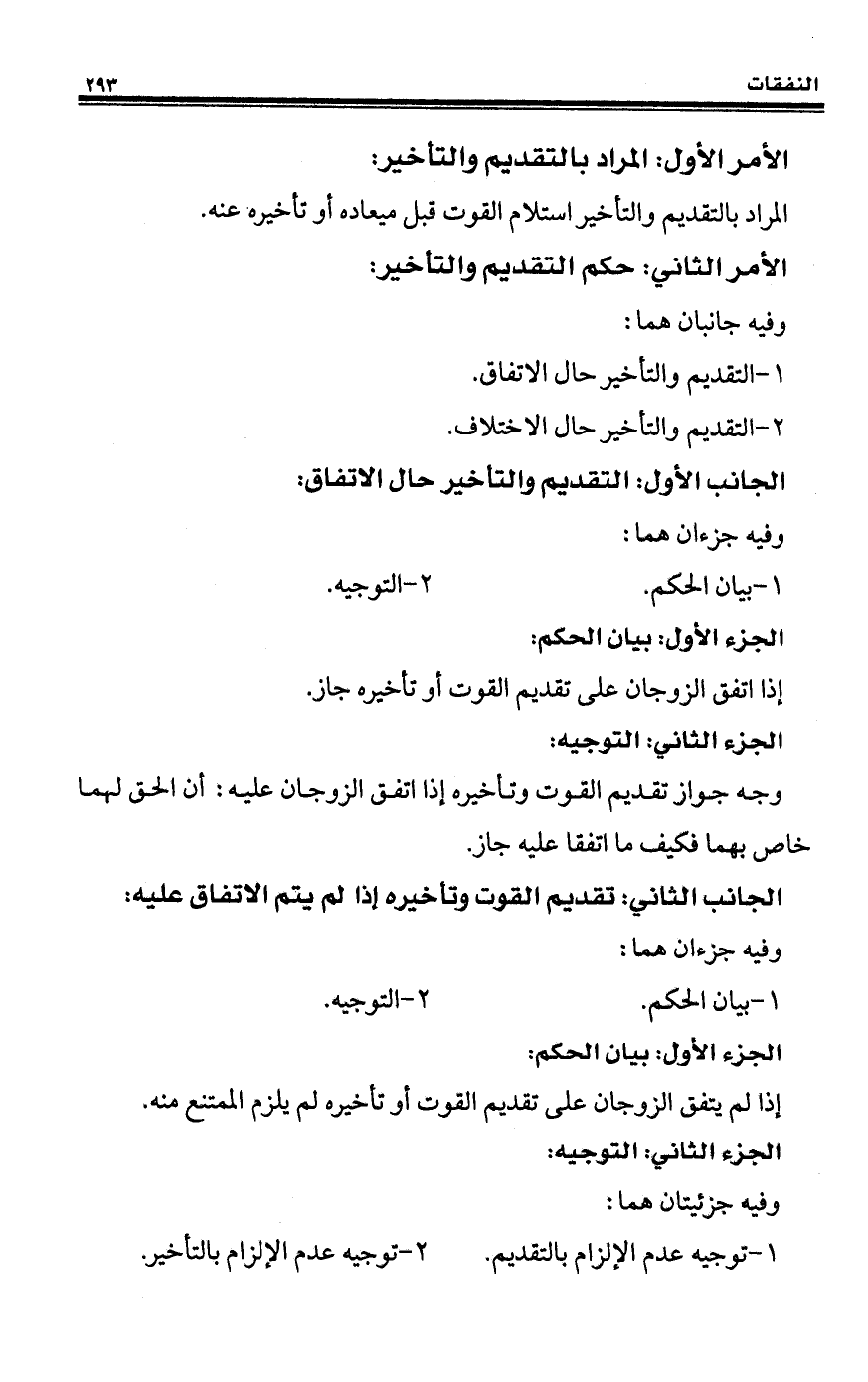 الجانب الثاني: تقديم القوت وتأخيره إذا لم يتم الاتفاق عليه: