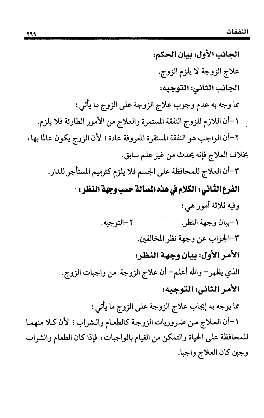 مما وجه به عدم وجوب علاج الزوجة على الزوج ما يأتي: