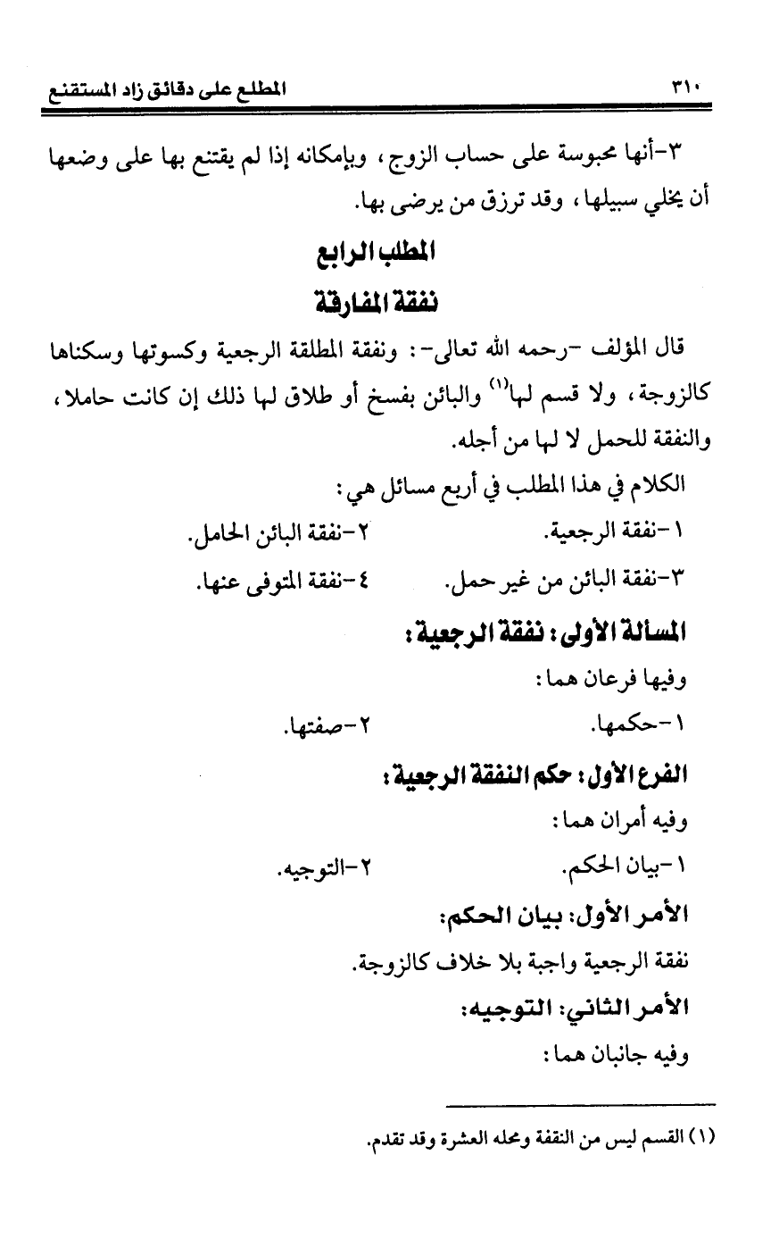 المسألة الأولى: نفقة الرجعية: