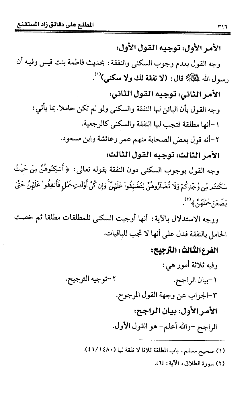 (¬1) صحيح مسلم، باب المطلقة ثلاثا لا نفقهة لها (1480/ 41).