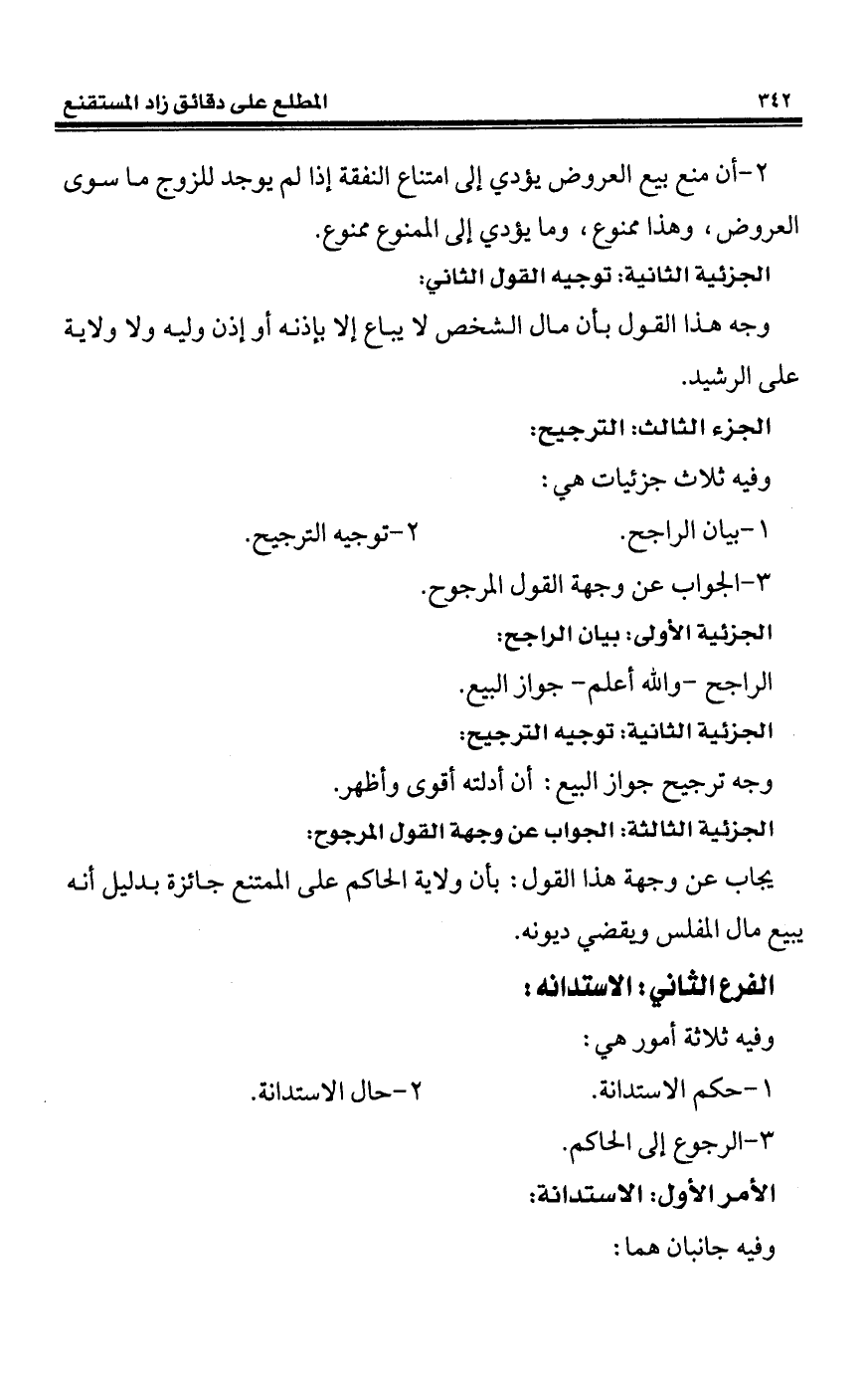 2 - أن منع بيع العروض يؤدي إلى امتناع النفقة إذا لم يوجد للزوج ما سوى العروض، وهذا ممنوع، وما يؤدي إلى الممنوع ممنوع.