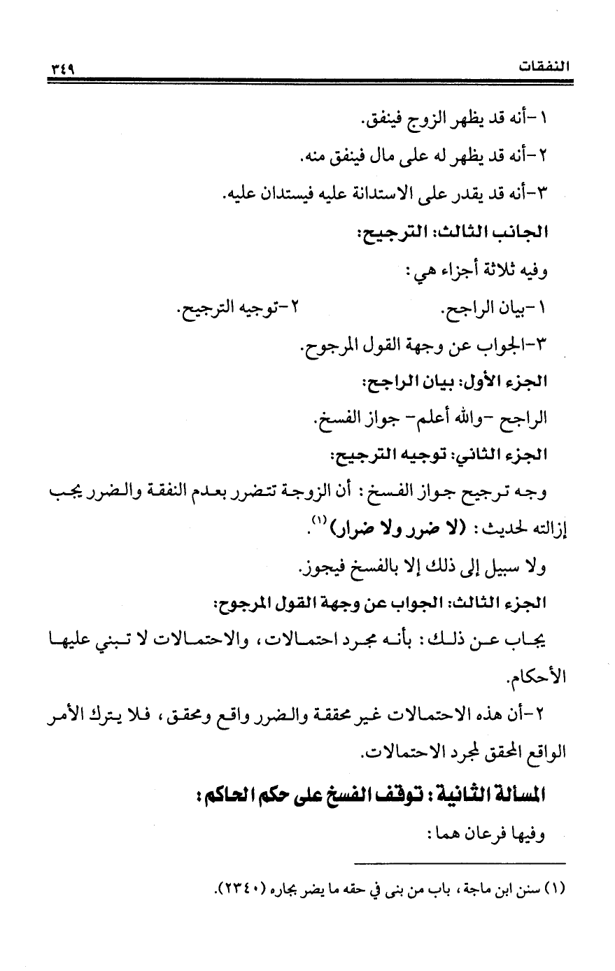 وجه ترجيح جواز الفسخ: أن الزوجة تتضرر بعدم النفقة والضرر يجب إزالته لحديث: (لا ضرر ولا ضرار) (¬1).