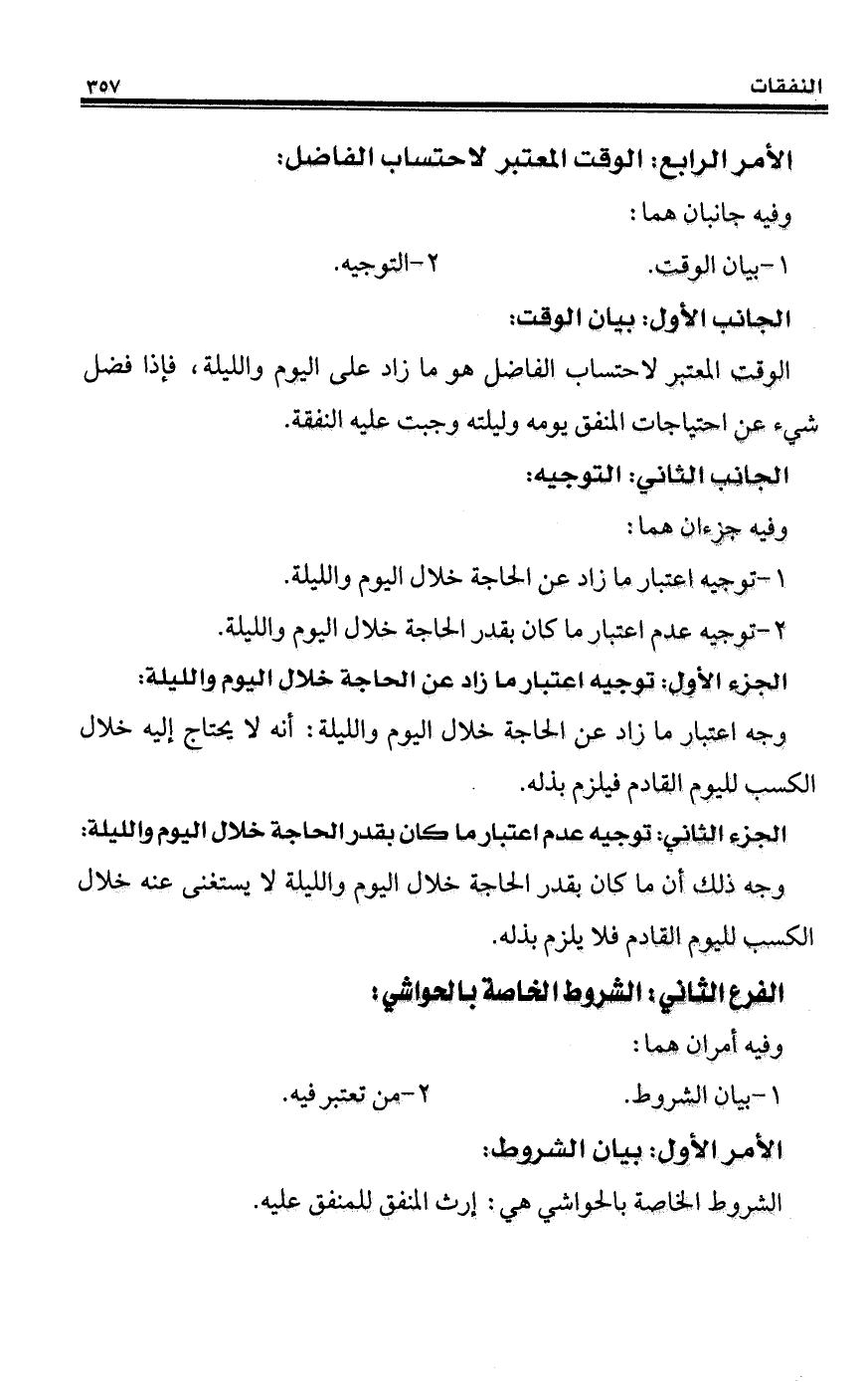 الجزء الأول توجيه اعتبار ما زاد عن الحاجة خلال اليوم والليلة: