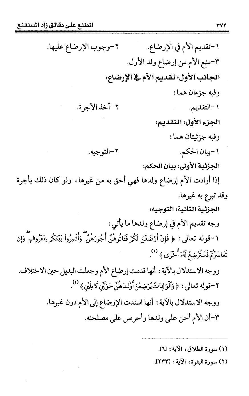 1 - قوله تعالى: {فَإِنْ أَرْضَعْنَ لَكُمْ فَآتُوهُنَّ أُجُورَهُنَّ وَأْتَمِرُوا بَيْنَكُمْ بِمَعْرُوفٍ وَإِنْ تَعَاسَرْتُمْ فَسَتُرْضِعُ لَهُ أُخْرَى} (¬1).