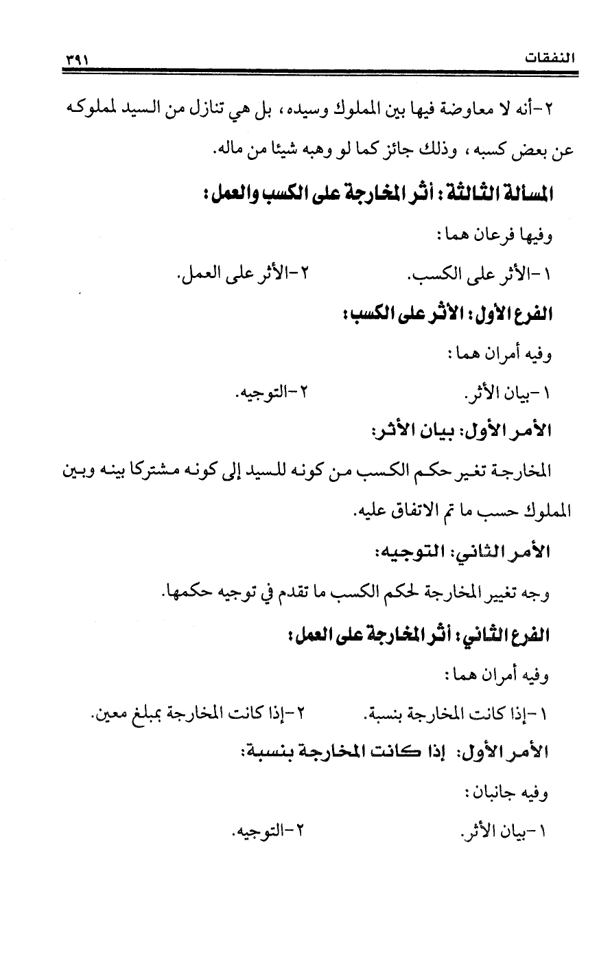 المسألة الثالثة: أثر المخارجة على الكسب والعمل: