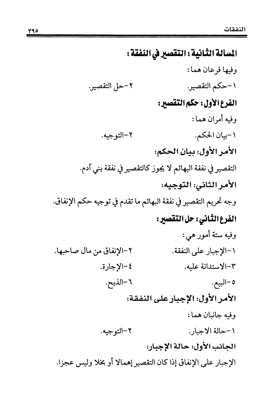 المسألة الثانية: التقصير في النفقة: