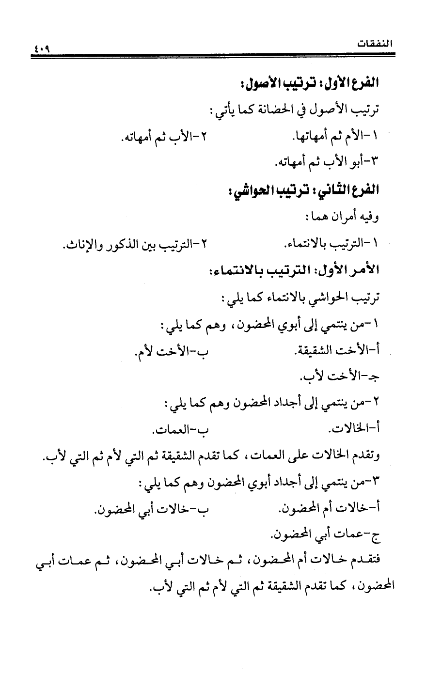 ترتيب الأصول في الحضانة كما يأتي: