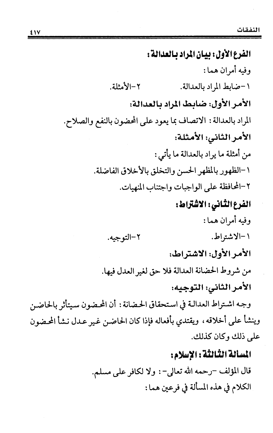 من أمثلة ما يراد بالعدالة ما يأتي:
