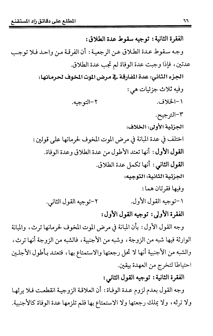 الجزء الثاني: عدة المفارقة في مرض الموت المخوف لحرمانها:
