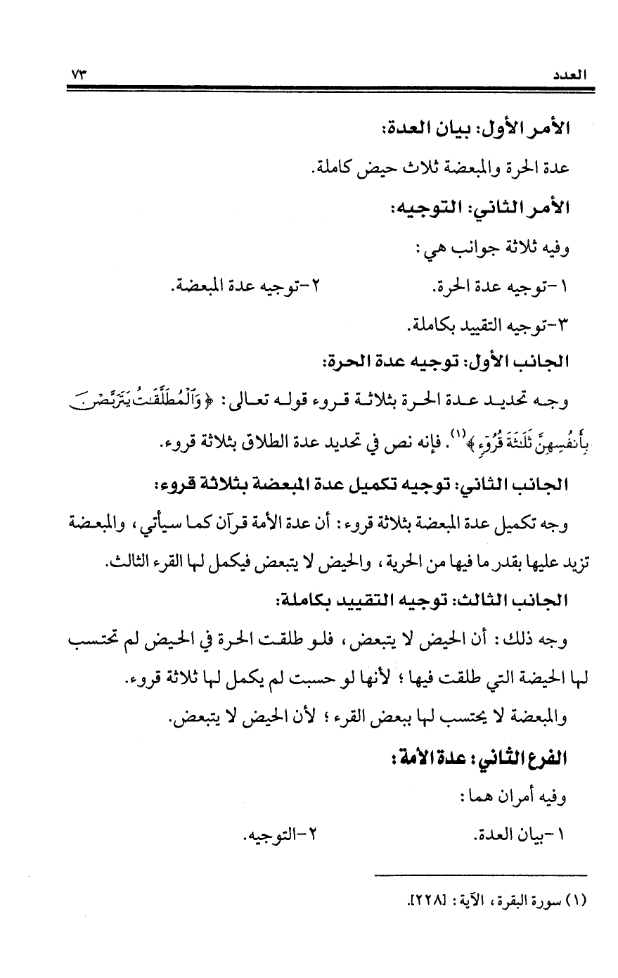 الجانب الثاني: توجيه تكميل عدة المبعضة بثلاثة قروء: