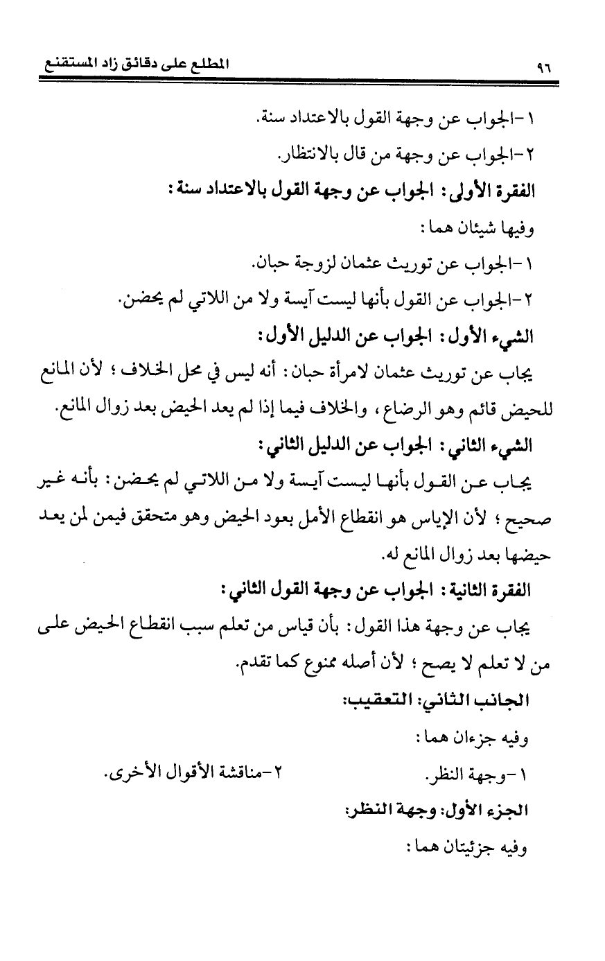1 - الجواب عن وجهة القول بالاعتداد سنة.