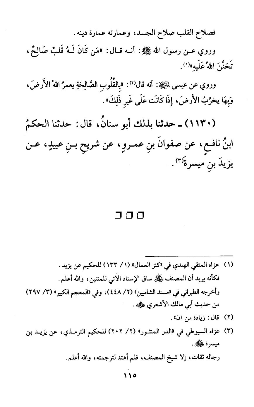 1130 - حدثنا بذلك أبو سنان، قال: حدثنا الحكم ابن نافعٍ، عن صفوان بن عمروٍ، عن شريح بن عبيدٍ، عن يزيد ين ميسرة.