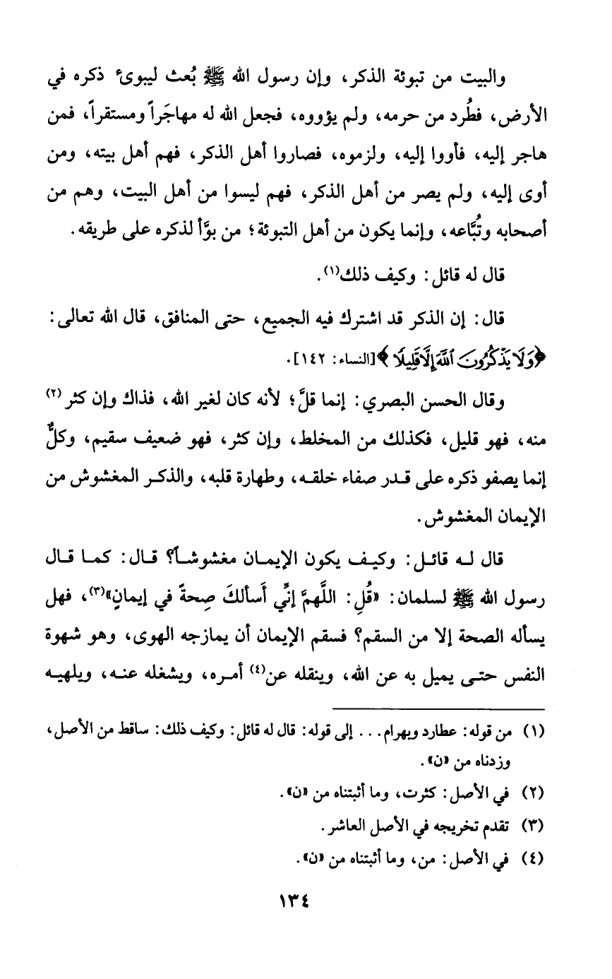 قال: إن الذكر قد اشترك فيه الجميع، حتى المنافق، قال الله تعالى: {ولا يذكرون الله إلا قليلاً}.
