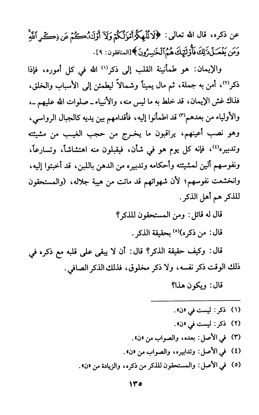 والإيمان: هو طمأنينة القلب إلى ذكر الله في كل أموره، فإذا ذكر، أمن به جملة، ثم مال يميناً وشمالاً ليطمئن إلى الأسباب والخلق، فذاك غش الإيمان، قد خلط به ما ليس منه، والأنبياء -صلوات الله عليهم-، والأولياء من بعدهم قد اطمأنوا إليه، فأقدامهم بين يديه كالجبال الرواسي، وهو نصب أعينهم، يراقبون ما يخرج من حجب الغيب من مشيئته وتدبيره، فإنه كل يوم هو في شأن، فيقبلون منه اهتشاشاً، وتسارعاً، ونفوسهم ألين لمشيئته وأحكامه وتدبيره من الدهن باللبن، قد أخبتوا إليه، وانخشعت نفوسهم؛ لأن شهواتهم قد ماتت من هيبة جلاله، (والمستحقون للذكر هم أهل الذكر.