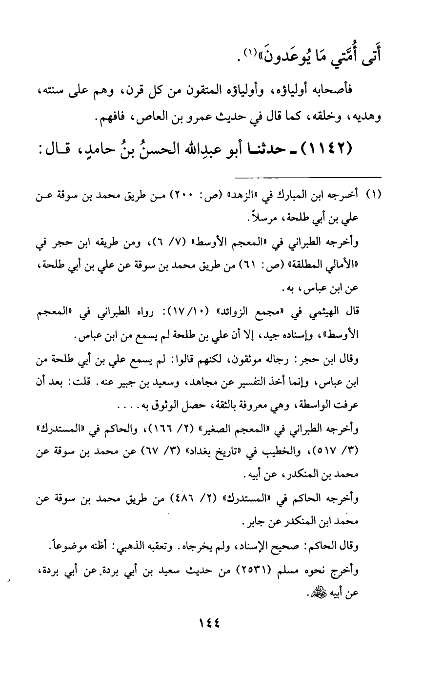 1142 - حدثنا أبو عبد الله الحسن بن حامدٍ، قال: