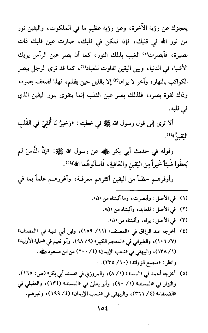 ألا ترى إلى قول رسول الله صلى الله عليه وسلم في خطبته: ((وخير ما ألقي في القلب اليقين)).