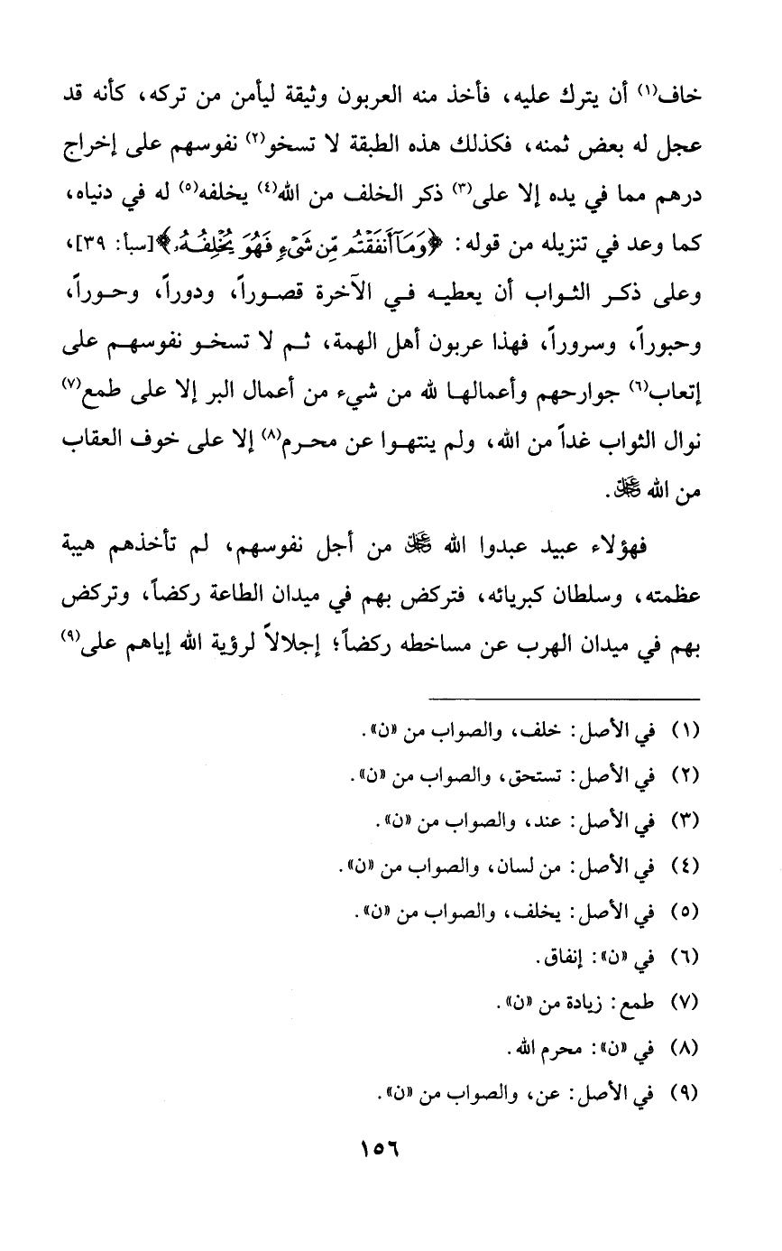 خاف أن يترك عليه، فأخذ منه العربون وثيقة ليأمن من تركه، كأنه قد عجل له بعض ثمنه، فكذلك هذه الطبقة لا تسخو نفوسهم على إخراج درهم مما في يده إلا على ذكر الخلف من الله يخلفه له في دنياه، كما وعد في تنزيله من قوله: {وما أنفقتم من شيءٍ فهو يخلفه}، وعلى ذكر الثواب أن يعطيه في الآخرة قصوراً، ودوراً، وحوراً، وحبوراً، وسروراً، فهذا عربون أهل الهمة، ثم لا تسخو نفوسهم على إتعاب جوارحهم وأعمالها لله من شيء من أعمال البر إلا على طمع نوال الثواب غداً من الله، ولم ينتهوا عن محرم إلا على خوف العقاب من الله عز وجل.