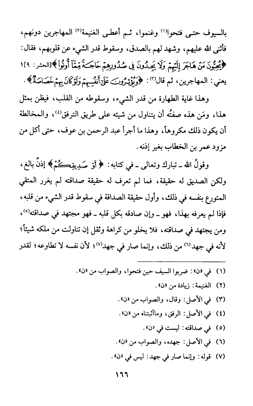 وقول الله -تبارك وتعالى- في كتابه: {أو صديقكم} إذنٌ بالغ، ولكن الصديق له حقيقة، فما لم تعرف له حقيقة صداقته لم يغرر المتقي المتورع بنفسه في ذلك، وأول حقيقة الصداقة في سقوط قدر الشيء من قلبه، فإذا لم يعرفه بهذا، فهو -وإن صادقه بكل قلبه- فهو مجتهد في صداقته، ومن يجتهد في صداقته، فلا يخلو من كراهة وثقل إن تناولت من ملكه شيئاً؛ لأنه في جهد من ذلك، وإنما صار في جهد؛ لأن نفسه لا تطاوعه؛ لقدر