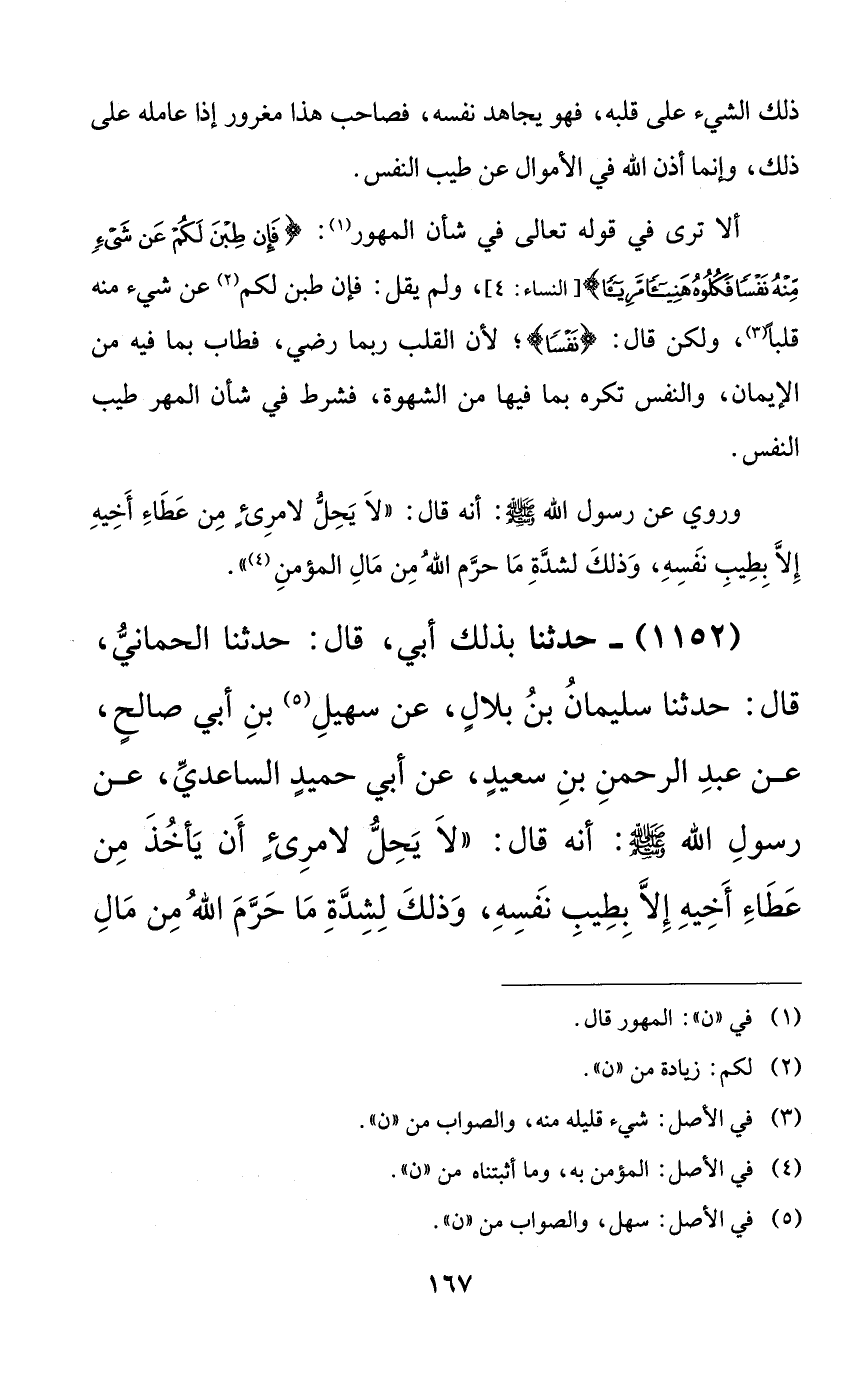 وروي عن رسول الله صلى الله عليه وسلم: أنه قال: ((لا يحل لامرئ من عطاء أخيه إلا بطيب نفسه، وذلك لشدة ما حرم الله من مال المؤمن)).