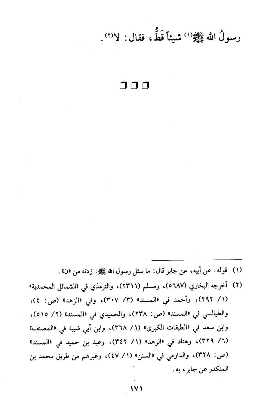 رسول الله صلى الله عليه وسلم شيئاً قط، فقال: لا.