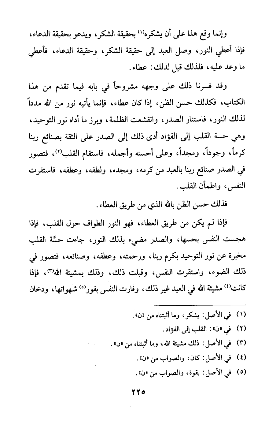 وقد فسرنا ذلك على وجهه مشروحاً في بابه فيما تقدم من هذا الكتاب، فكذلك حسن الظن، إذا كان عطاء، فإنما يأتيه نور من الله مدداً لذلك النور، فاستنار الصدر، وانقشعت الظلمة، وبرز ما أداه نور التوحيد، وهي حسة القلب إلى الفؤاد أدى ذلك إلى الصدر على الثقة بصنائع ربنا كرماً، وجوداً، ومجداً، وعلى أحسنه وأجمله، فاستقام القلب، فتصور في الصدر صنائع ربنا بالعبد من كرمه، ومجده ولطفه، وعطفه، فاستقرت النفس، واطمأن القلب.