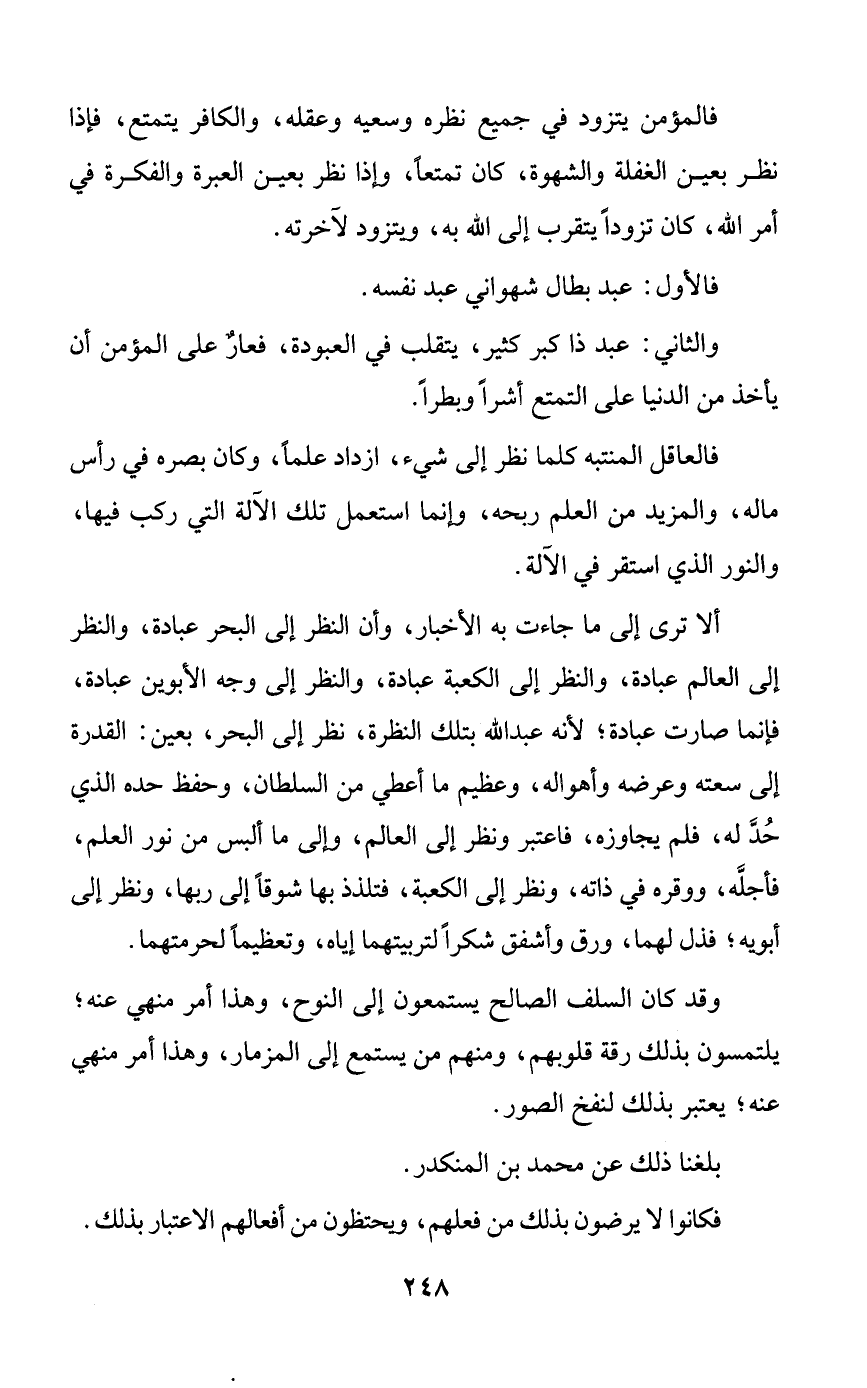 فالعاقل المنتبه كلما نظر إلى شيء، ازداد علماً، وكان بصره في رأس ماله، والمزيد من العلم ربحه، وإنما استعمل تلك الآلة التي ركب فيها، والنور الذي استقر في الآلة.