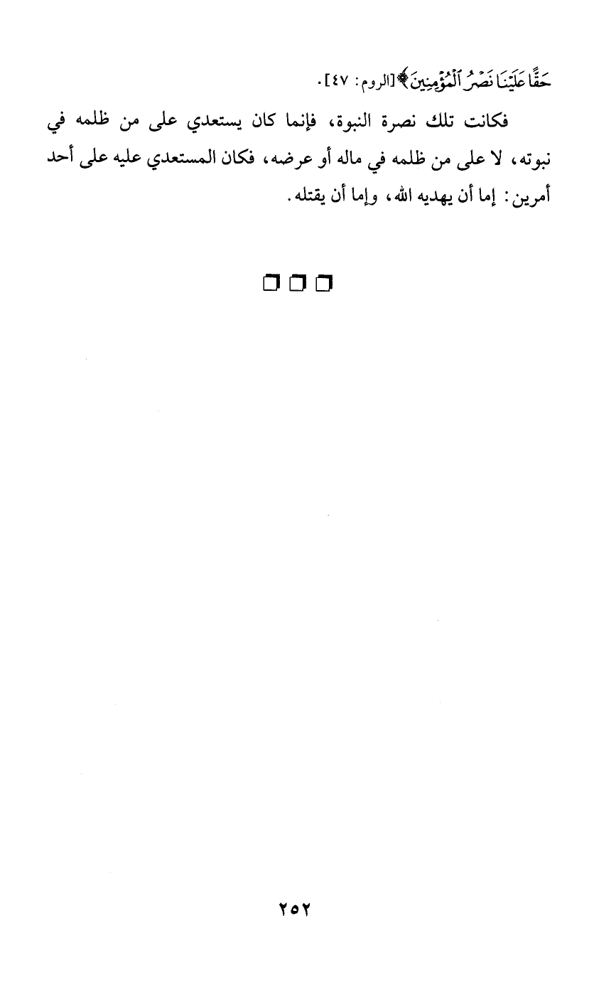 فكانت تلك نصرة النبوة، فإنما كان يستعدي على من ظلمه في نبوته، لا على من ظلمه في ماله أو عرضه، فكان المستعدي عليه على أحد أمرين: إما أن يهديه الله، وإما أن يقتله.